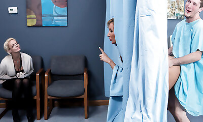 Awesome curvy sexpot Nina Elle substitutes a fuck-a-thon doll and works on sausage