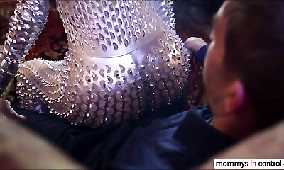 Brunette mommy in latex Ava Addams pummels an horny guy