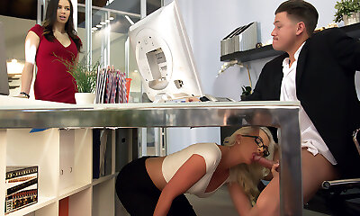 trampy помощник дает ее менеджер bj под столом