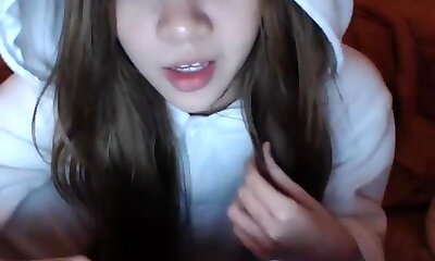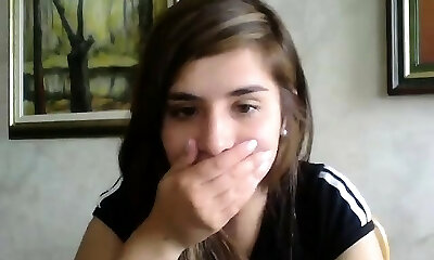 高度超热19yo无经验的黑头发的十几岁在网络摄像头
